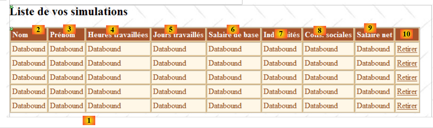 Un objet de type [Simulation] sert à encapsuler une ligne du tableau des simulations :