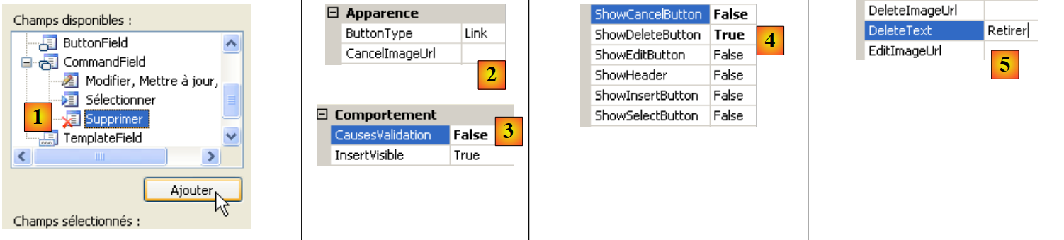 La procédure [GridViewSimulations_RowDeleting ] qui traite cette action pourrait ressembler à ce qui suit :
