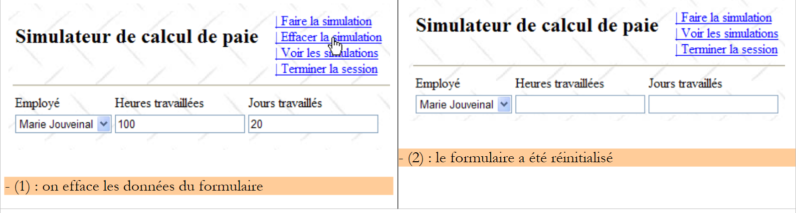 Une fois revenu au formulaire de simulation, l'utilisateur peut demander à effacer les saisies présentes :
