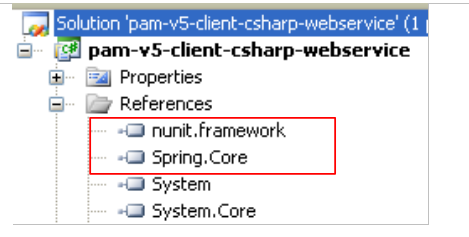 La référence sur la DLL de Spring peut être rajoutée comme il a été fait avec le framework NUnit si les DLL ont été au préalable enregistrées sur le poste (http://www.springframework.net/download.html).