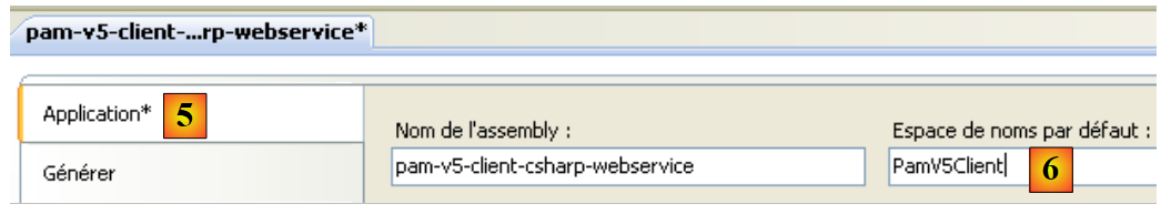 - en [6], l'espace de noms dans lequel on veut placer les classes et interfaces du client qui va être généré.