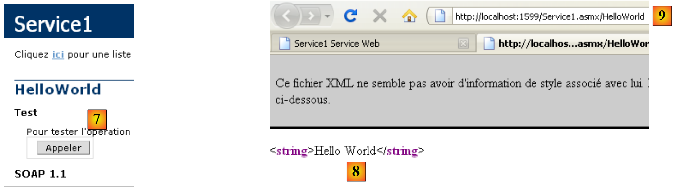 - en [7], la page obtenue en suivant le lien [4] permet d'appeler la méthode [HelloWorld] du service web