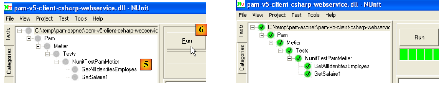 - en [5], la classe de test est sélectionnée et exécutée [6]