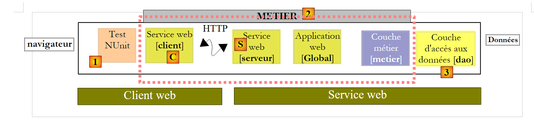 - le client est constitué de la couche [web]. Pour s'exécuter, il a besoin du serveur web n° 1.