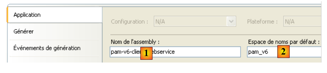 - en [6], on fixe l'espace de noms dans lequel les classes et interfaces du client [C] vont être générées