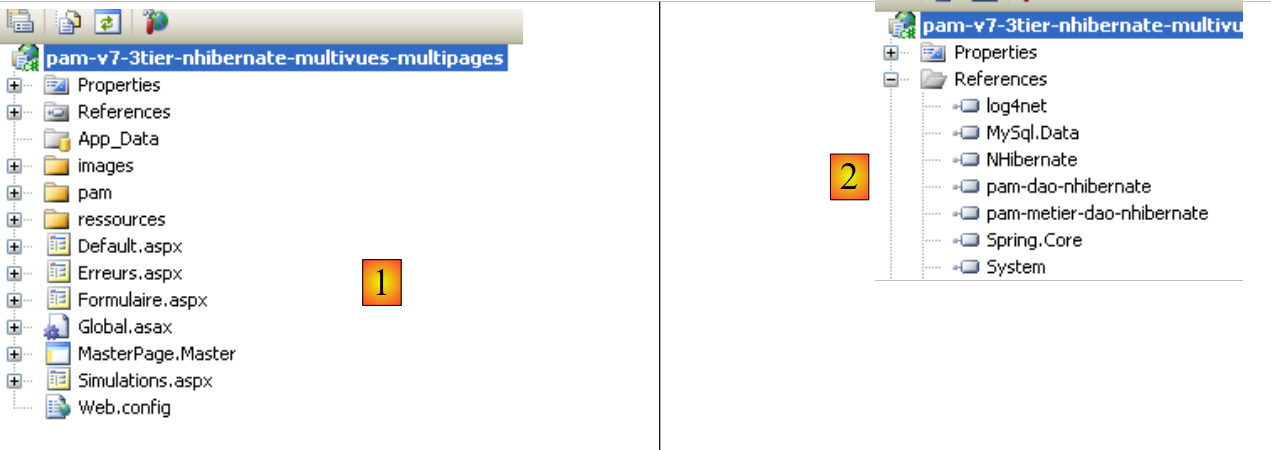 Vis à vis du projet [pam-v4-3tier-nhibernate-multivues-monopage], seules changent les vues. C'est ainsi que le nouveau projet reprend certains des fichiers de ce projet :