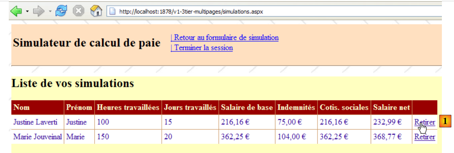- en [2] : la page [Simulations.aspx] a traité cette demande et généré elle-même la réponse en réaffichant la nouvelle liste de simulations.