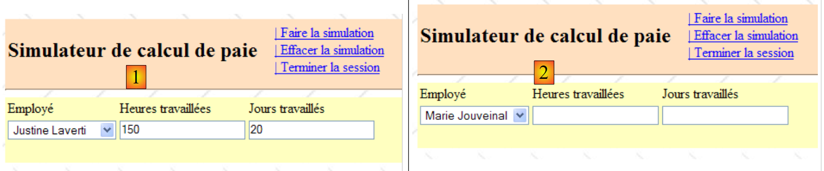 Voici deux exemples pris dans l'application étudiée :