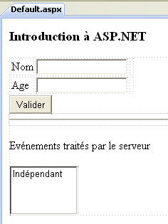 Nous nous proposons ici d'introduire, à l'aide de quelques exemples, les concepts d'ASP.NET qui nous seront utiles dans la suite du document. Cette introduction ne permet pas de comprendre les subtilités des échanges client / serveur d'une application web. Pour cela, on pourra lire :