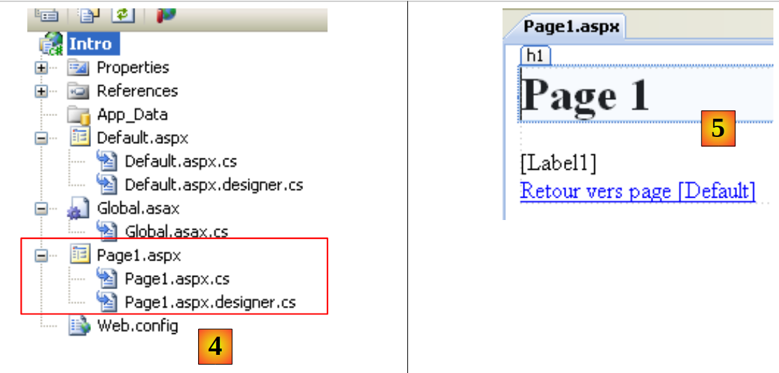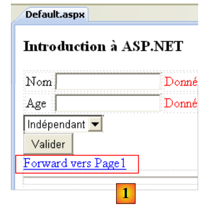 - dans la page [Default.aspx] [1], on clique sur le lien [2] qui nous mène vers la page Page1