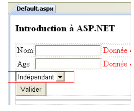 DropDownListNoms | "value" de l'élément sélectionné | True | on veut garder le contenu de la liste au fil des requêtes sans avoir à la régénérer |