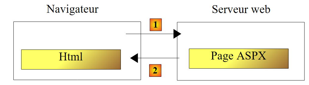 - en [2], le navigateur fait une requête GET à la page [Page2.aspx]. Celle-ci est alors envoyée en réponse au navigateur.