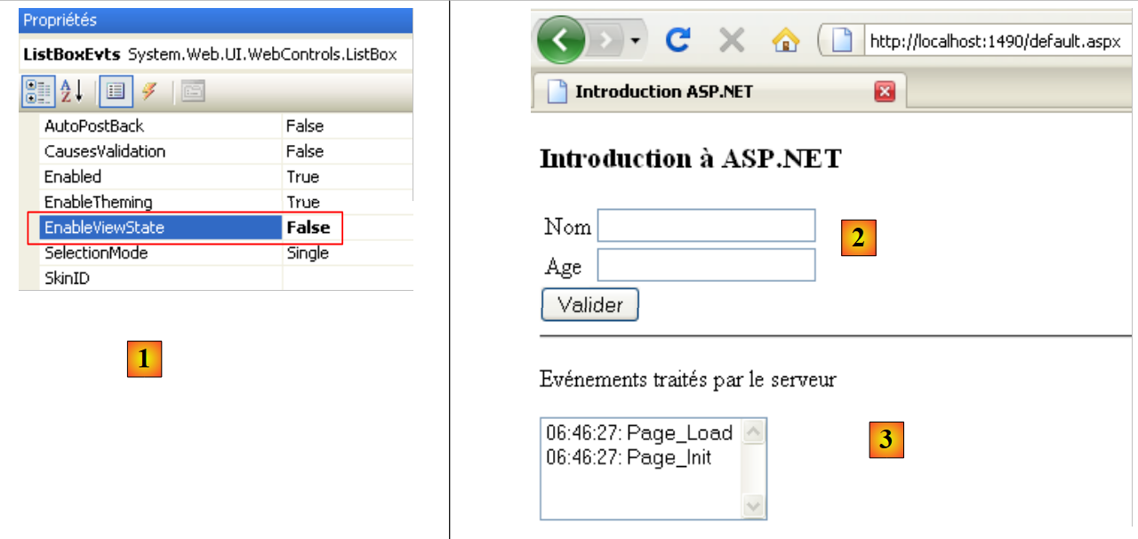 peuvent avoir leur propriété EnableViewState à Faux puisque leur valeur de VIEWSTATE (étape 2) va être modifiée par l'une des étapes 3 ou 4.
