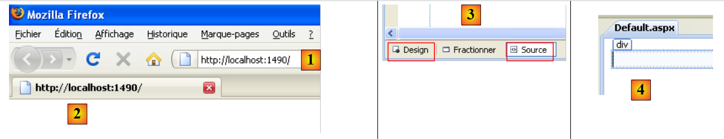- dans Visual Web Developer, la page [Default.aspx] [3] peut être construite visuellement (onglet [Design]) ou à l'aide de balises (onglet [Source])