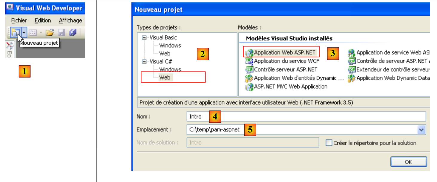 - en [1], on crée un nouveau projet avec Visual Web Developer