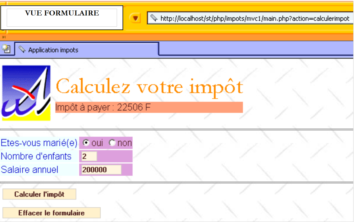 - impots-calcul.php est la classe métier permettant le calcul de l'impôt