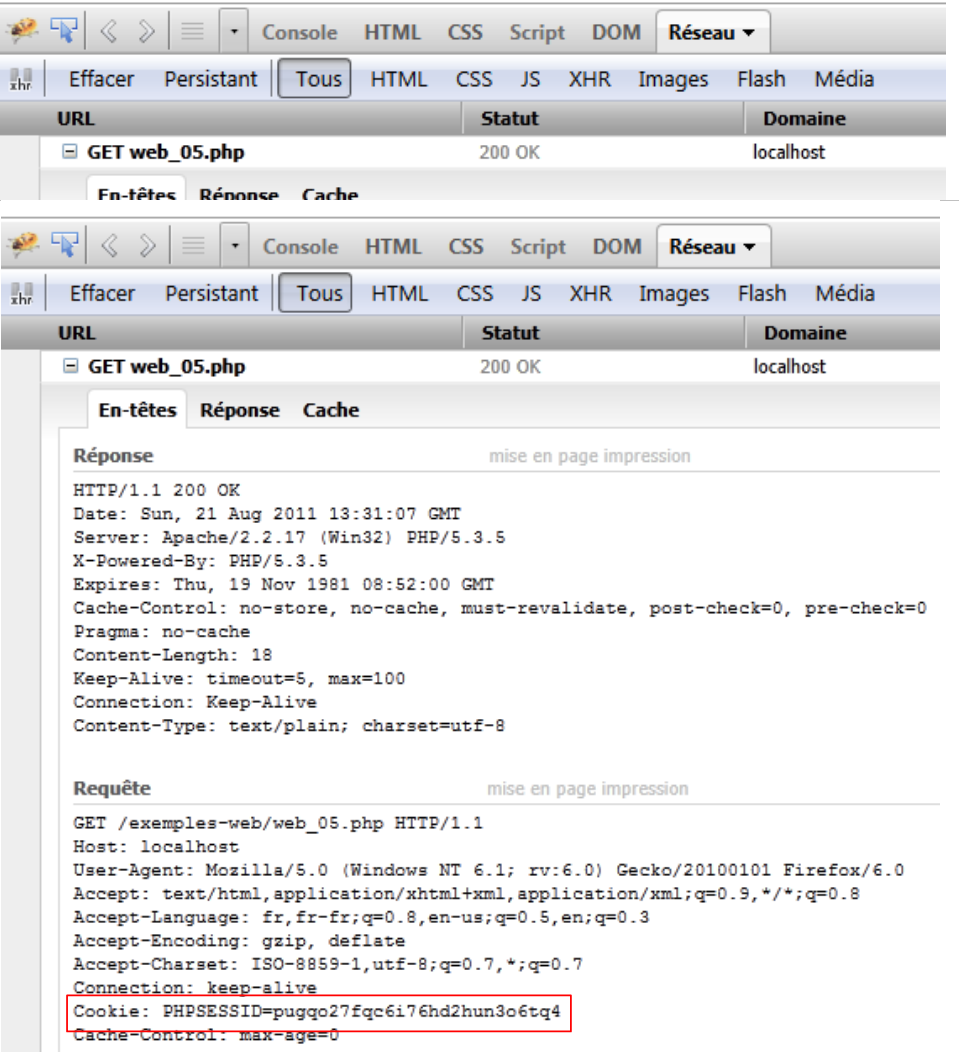 - ligne 5 : dans sa première réponse, le serveur envoie l'identifiant de session. Dans les réponses suivantes, il ne l'envoie plus.