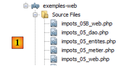 - lors du début d'une nouvelle session client, il placera dans des tableaux les données de la base de données MySQL [dbimpots]. Pour cela, il fera appel à la couche [dao]. Les tableaux ainsi construits seront placés dans la session du client afin d'être utilisables dans les requêtes ultérieures du client.