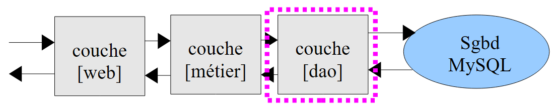 - une couche appelée [dao] (Data Access Objects) qui s'occupera des échanges avec la base de données MySQL