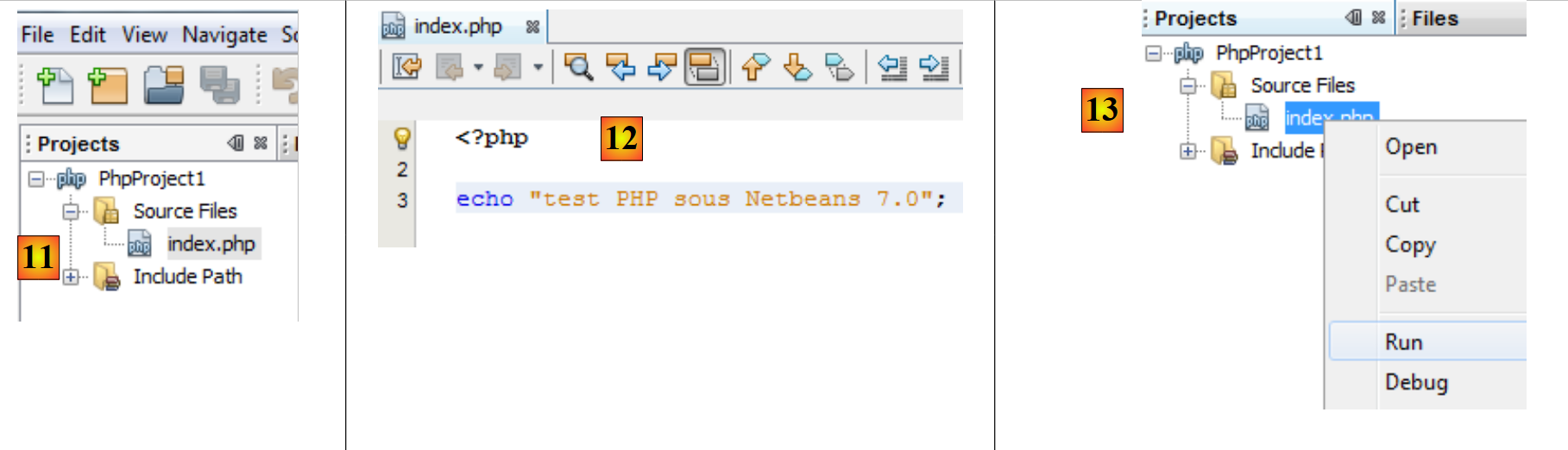 On téléchargera soit la version complète [1], soit la version limitée à PHP [2] qui est plus légère. Une fois Netbeans installé et lancé, on peut créer un premier projet PHP.