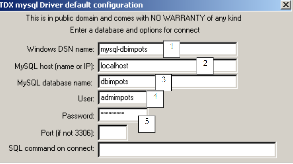 - le pilote MySQL demande un certain nombre de renseignements :