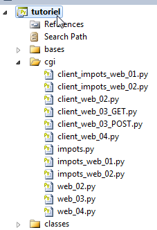 Le service web qui suit reçoit 3 paramètres de son client : nom, prenom, age. Il les récupère dans une sorte de dictionnaire nommé cgi.FieldStorage fourni par le module cgi. La valeur vali d'un paramètre parami est obtenue par vali=cgi.FieldStorage().getlist("parami"). On obtient un tableau de :