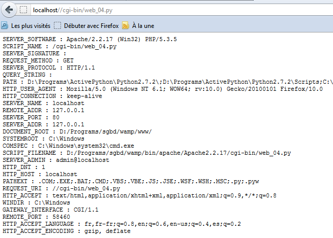 On reconnaît lignes 7-8, l'entête Http envoyé par le script Python. Ceux qui précèdent ont été générés par le serveur web Apache.