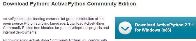 - ne pas télécharger la version 64 bits d'Active Python. Elle ne permet pas l'installation du module MySQLdb dont on a besoin dans la suite du document.