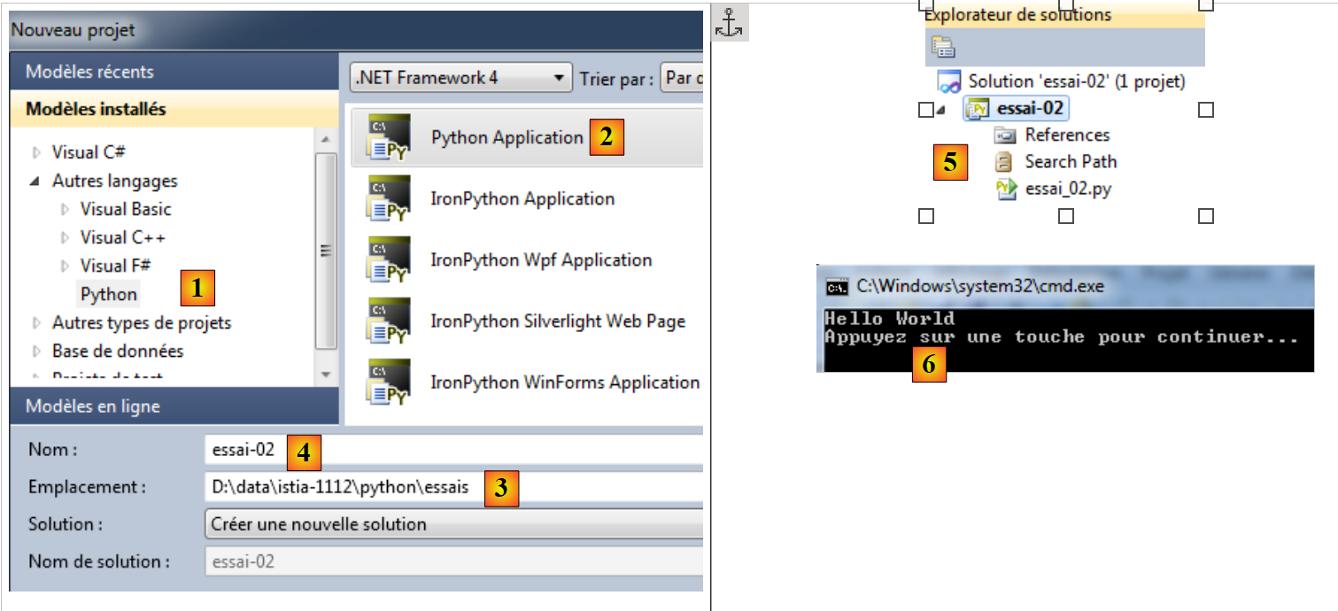 - en [1,2] : choisir un projet Python de type [Python Application] ;