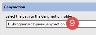 - en [8-9], indiquez le dossier d'installation du gestionnaire d'émulateurs [Genymotion] ;
