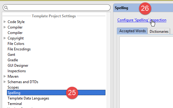- en [23-27], on désactive la correction orthographique qui par défaut est pour la langue anglaise ;