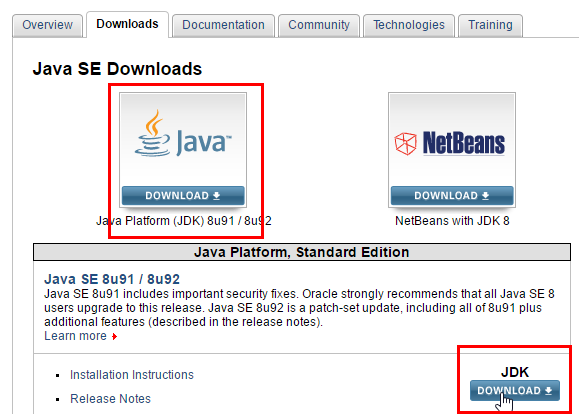 On trouvera à l'URL [http://www.oracle.com/technetwork/java/javase/downloads/index.html] (avril 2016), le JDK le plus récent. On nommera par la suite <jdk-install> le dossier d'installation du JDK.