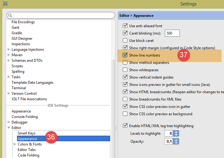 - en [36-37], par défaut numérotez les lignes. Cela vous permettra de retrouver rapidement la ligne qui a provoqué une exception ;