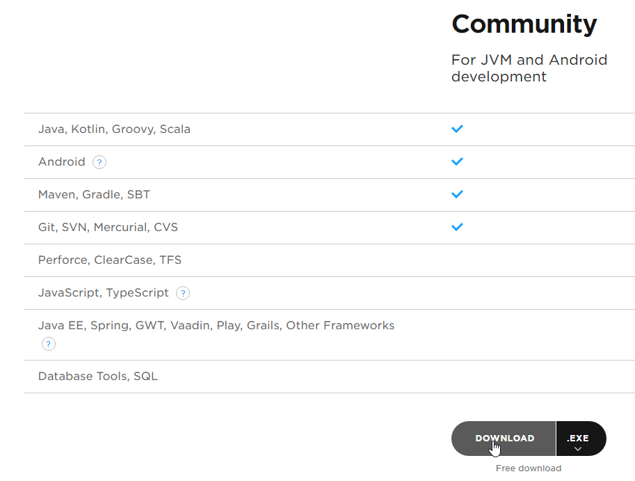 L'IDE [ Intellij IDEA Community Edition] est disponible à l'URL [https://www.jetbrains.com/idea/#chooseYourEdition] :