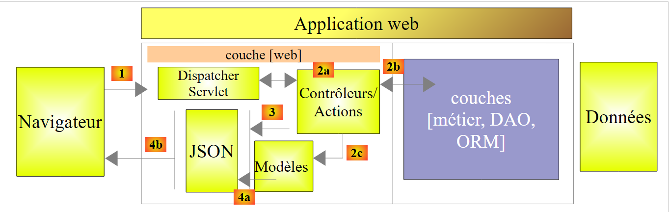 Note : le service web / jSON est implémenté par la technologie Spring MVC. Le lecteur ne connaissant pas celle-ci peut soit :