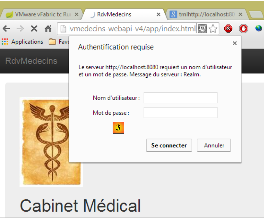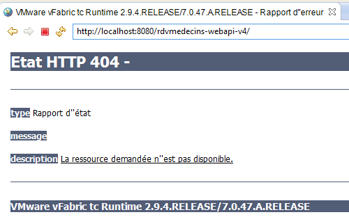 Ceci fait, lançons [2], le serveur VMware de STS, puis demandons l'URL [http://localhost:8080/rdvmedecins-webapi-v4/app/index.html] :