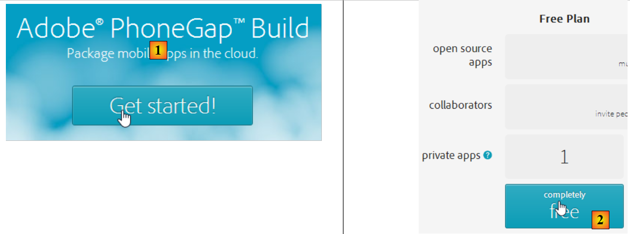 - en [2], on choisit un plan gratuit n'autorisant qu'une application Phonegap ;