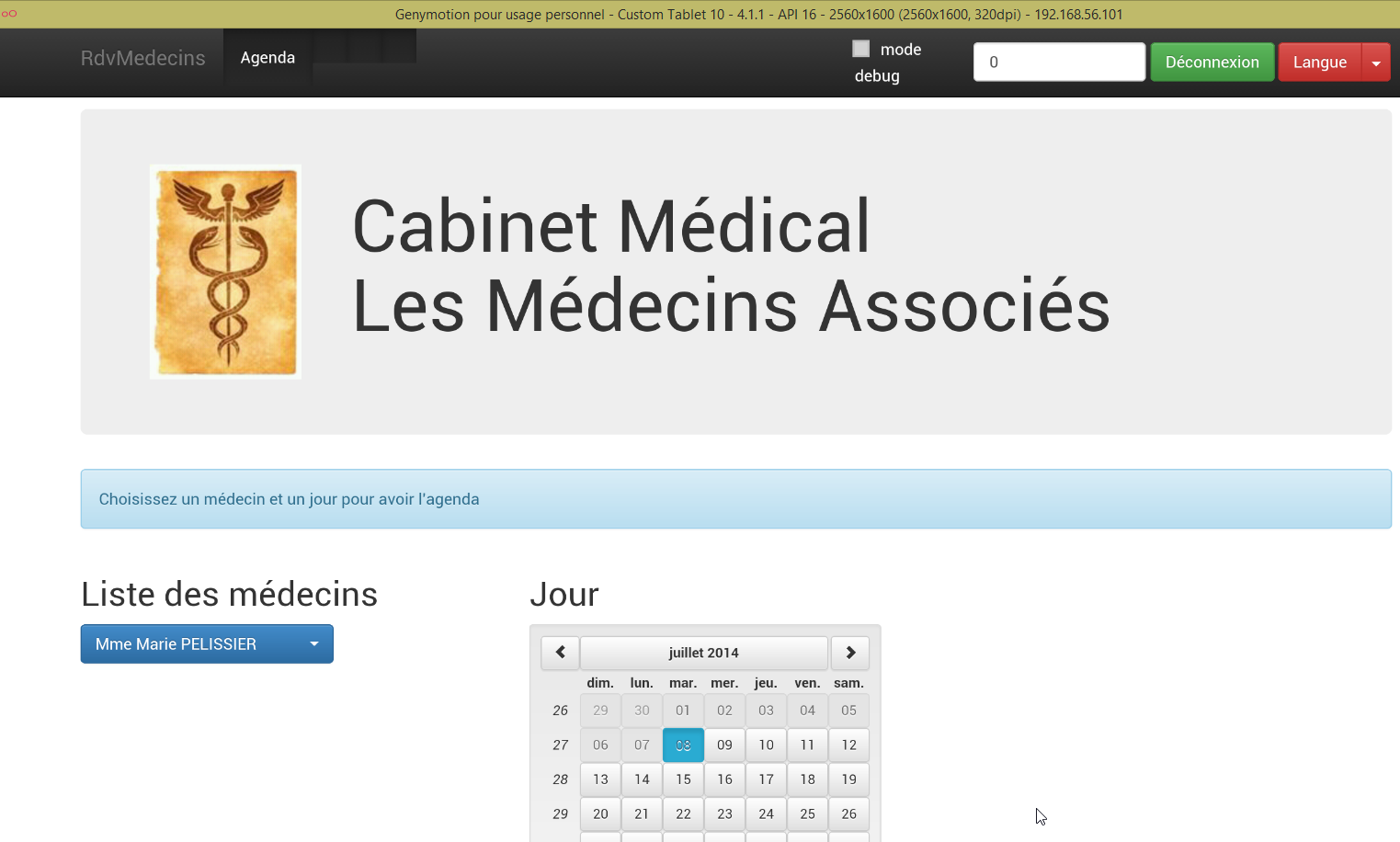 - le client HTML est à l'URL [http://localhost:8080/rdvmedecins-webapi-v4/app];