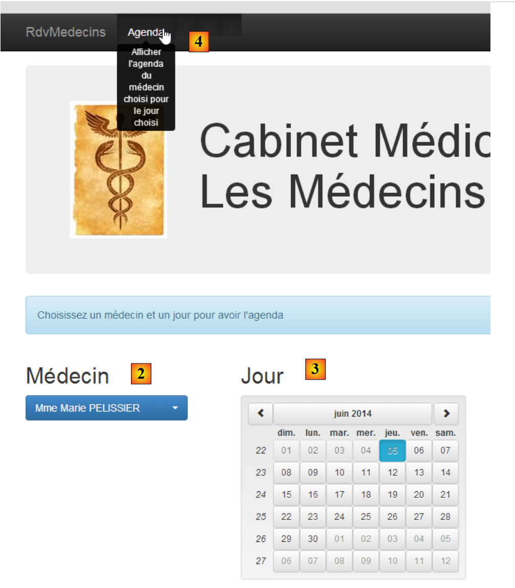 - on demande en [4] à voir l'agenda du médecin choisi pour le jour choisi ;