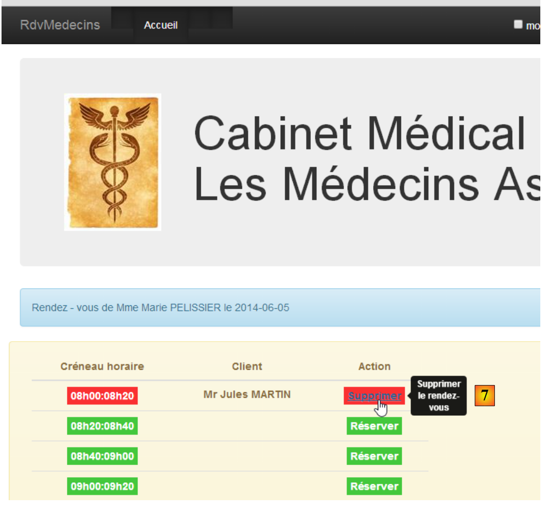 - en [6], on choisit le patient pour le rendez-vous et on valide ce choix en [7] ;
