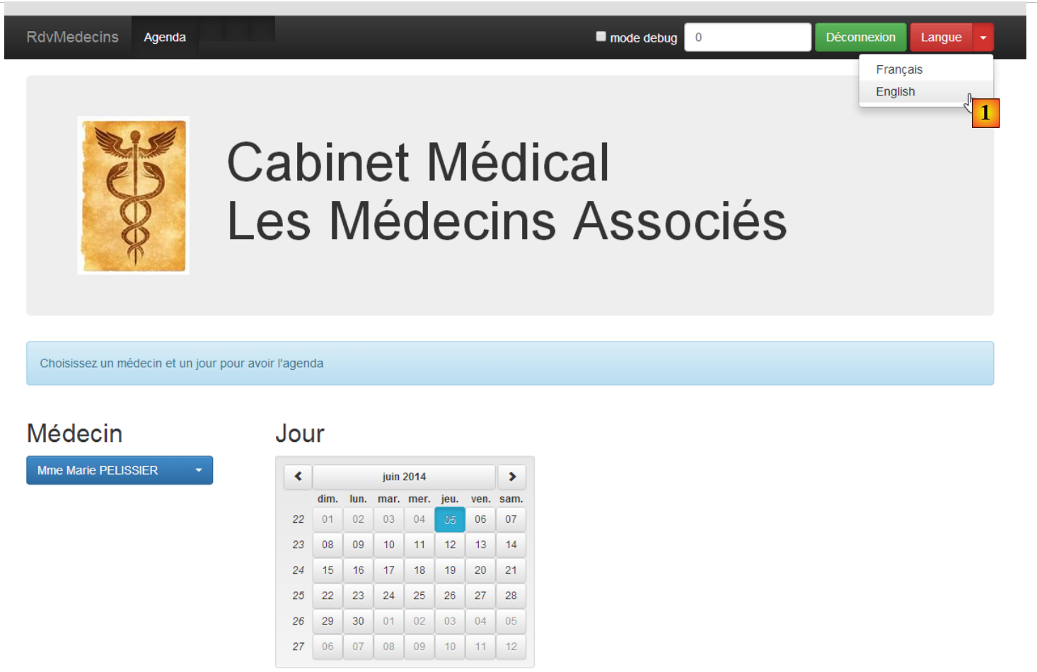 - une fois connecté, on peut choisir le médecin avec lequel on veut un rendez-vous [2] et le jour de celui-ci [3] ;