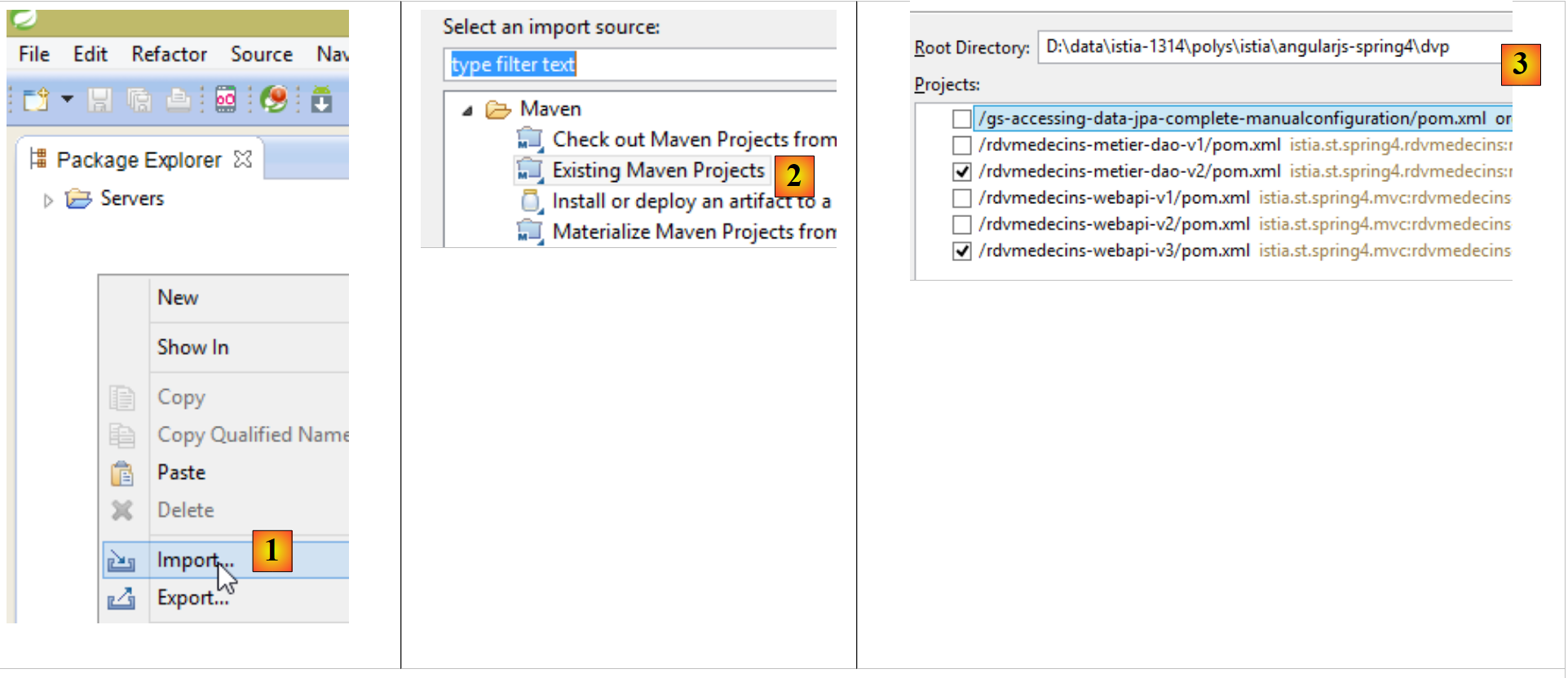 - en [1] et [2], nous importons des projets Maven ;