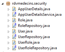 L'ajout des classes nécessaires à Spring Security a pu se faire avec peu de modifications du projet originel. Rappelons-les :