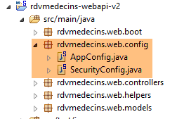 Les seules modifications sont à faire dans le package [rdvmedecins.web.config] où il faut configurer Spring Security. Nous avons déjà rencontré une classe de configuration de Spring Security :