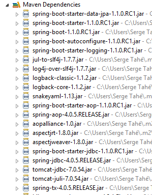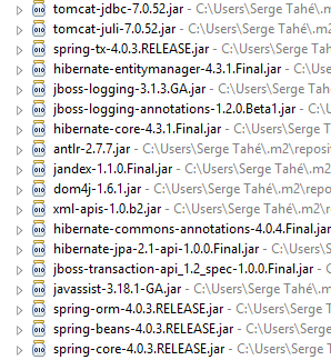 - d'autres appartiennent à l'écosystème Hibernate (hibernate, jboss) dont on utilise ici l'implémentation JPA ;