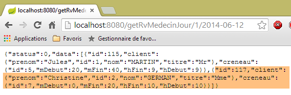 Maintenant que nous savons générer l'entête HTTP d'authentification, nous lançons le service web maintenant sécurisé. Puis avec le client Chrome [Advanced Rest Client], nous demandons la liste des tous les médecins :