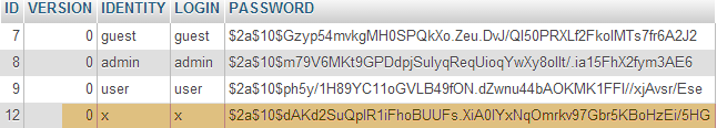 - le type de cryptage utilisé pour le mot de passe. On rappelle ici que nous avons utilisé l'algorithme BCrypt ;