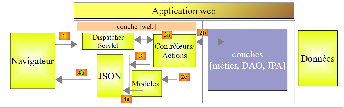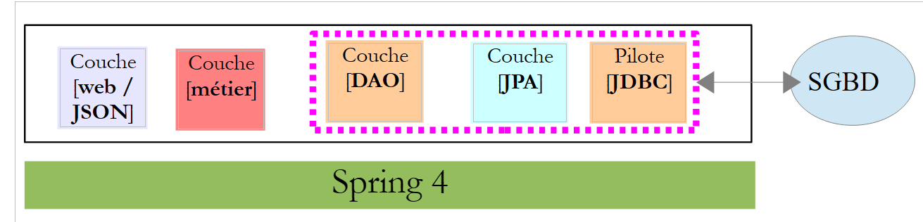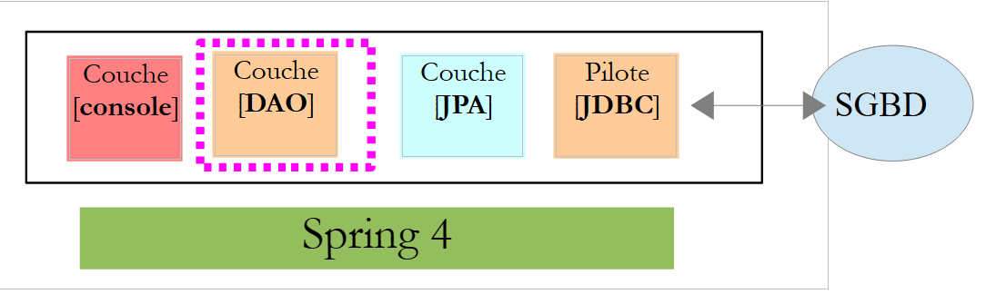 - d'abord les couches [métier] et [DAO] (Data Access Object). Nous utiliserons ici Spring Data ;