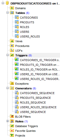 On procède de la même façon pour charger la base [dbproduitscategories] qu'on trouvera en [<exemples>\spring-database-config\firebird\databases\DBPRODUITSCATEGORIES.GDB]