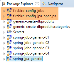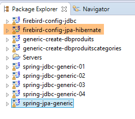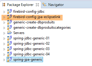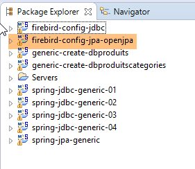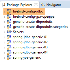 Les projets Firebird ci-dessus seront trouvés dans le dossier [<exemples>/spring-database-config\firebird\eclipse].